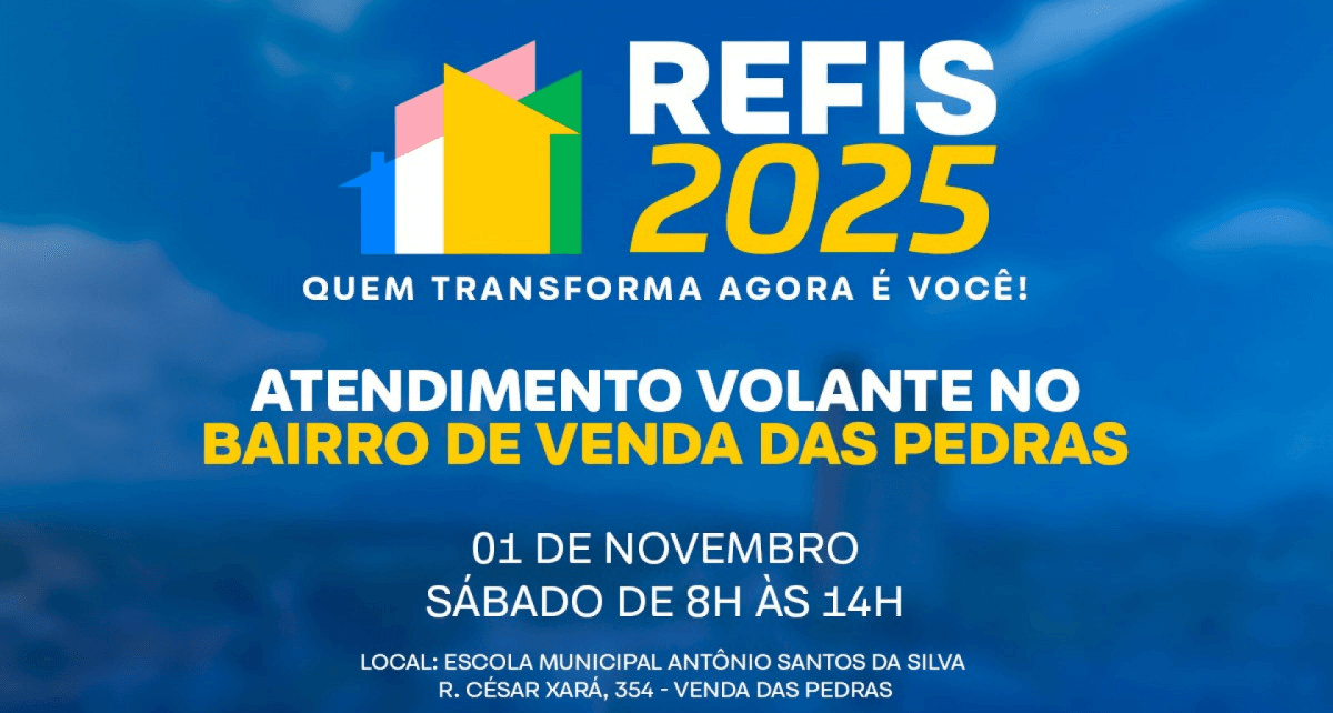 Prefeitura de Itaboraí realiza atendimento itinerante do REFIS 2025 em Venda das Pedras neste sábado. Prefeitura de Itaboraí realiza atendimento itinerante do REFIS 2025 em Venda das Pedras neste sábado.Itaboraí Em Foco|31/10/2025|Economia, Governo Municipal|