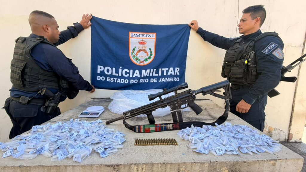 Um fuzil, munições e entorpecentes foram apreendidos na manhã desta sexta-feira (17) durante uma operação da Polícia Militar na comunidade da Reta Velha, em Itaboraí, na Região Metropolitana do Rio de Janeiro.